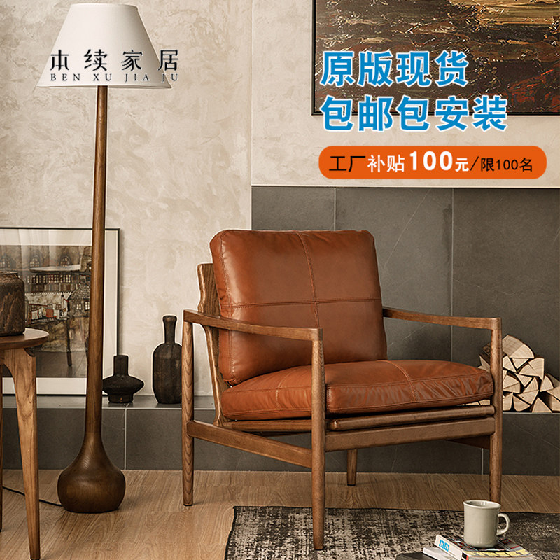 家用休闲椅客厅极简椅子冬夏两用单人椅新中式复古实木沙发椅组合