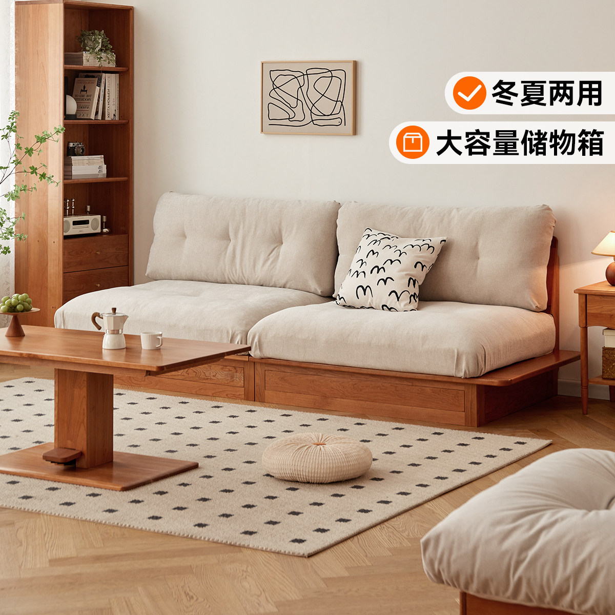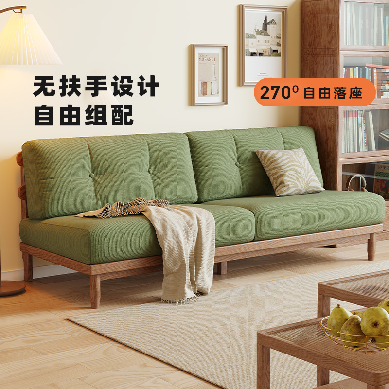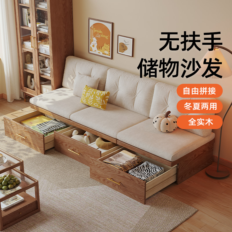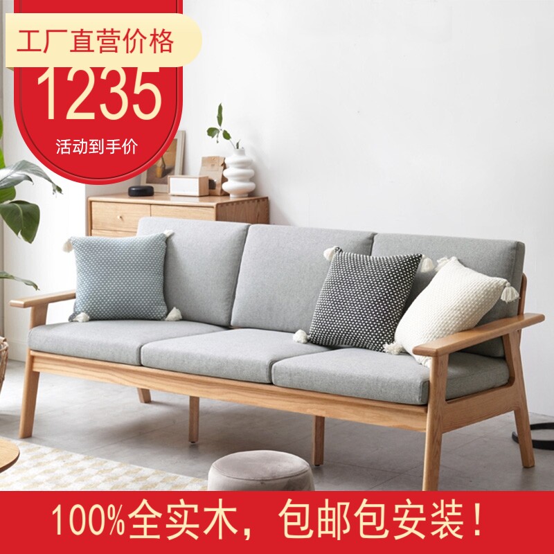 全实木沙发现代简约冬夏两用橡木直排沙发北欧客厅家用布艺沙发