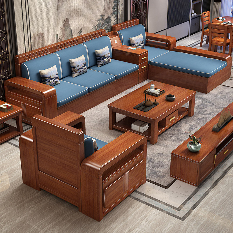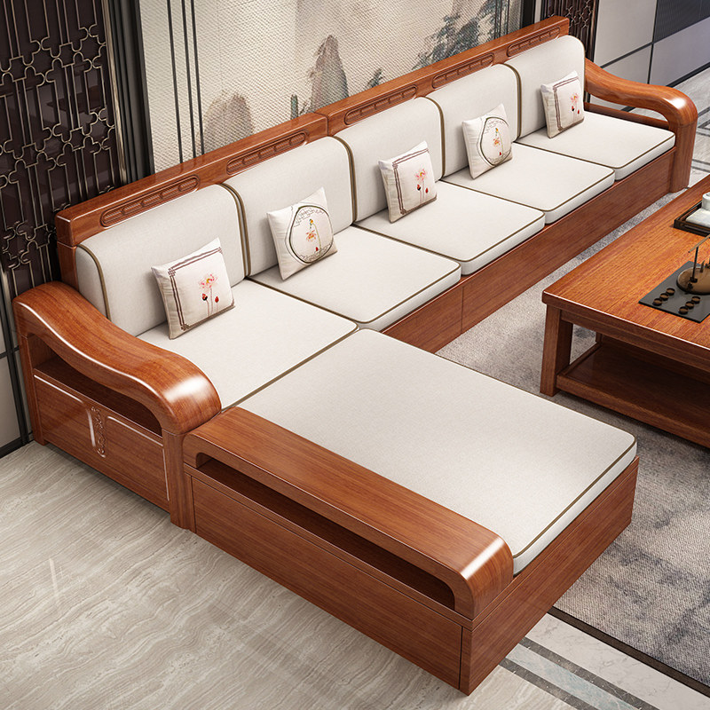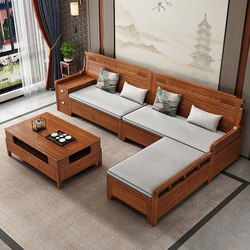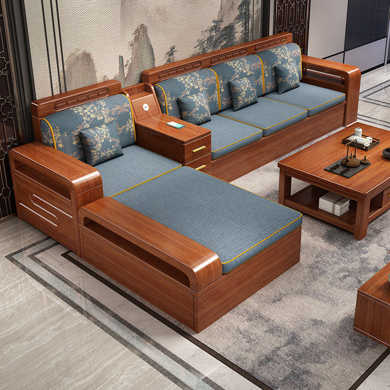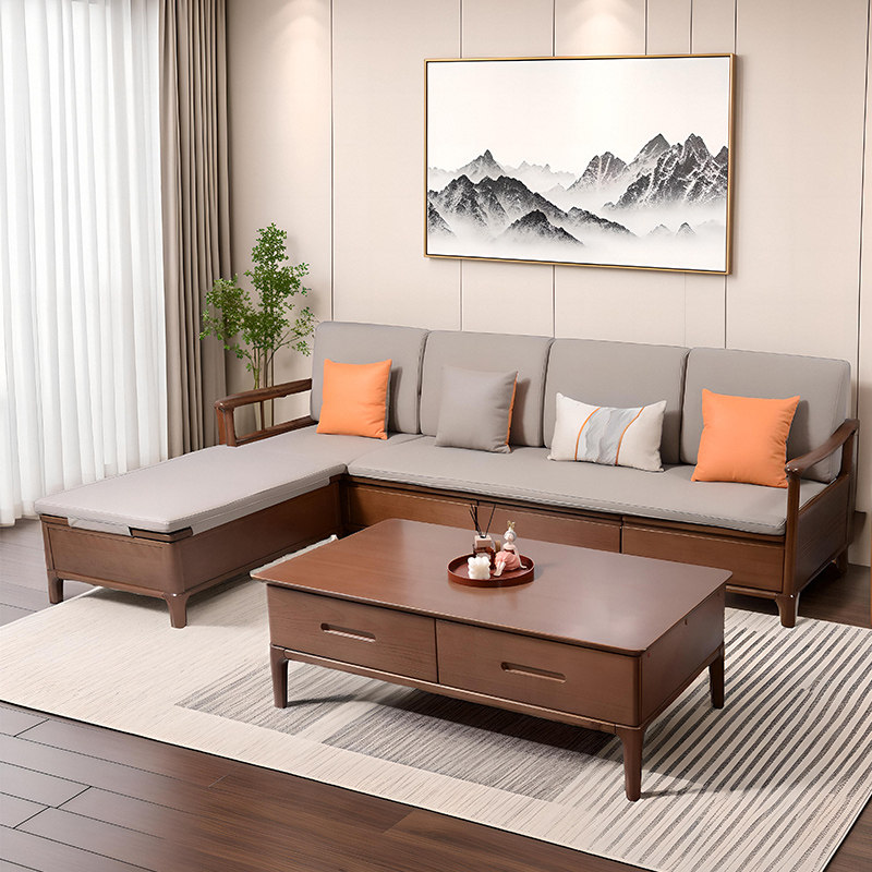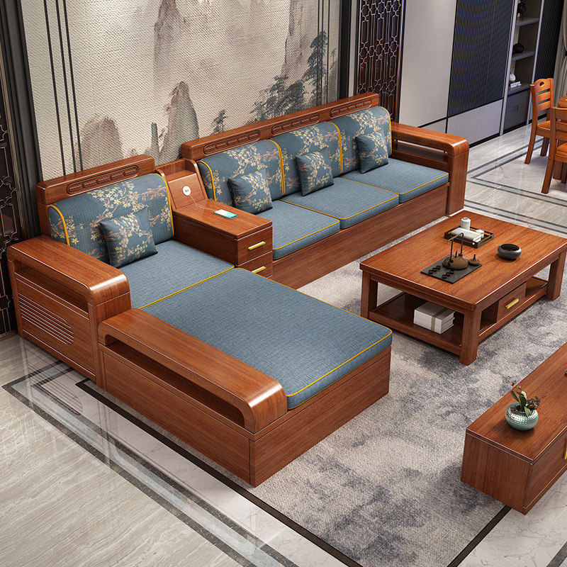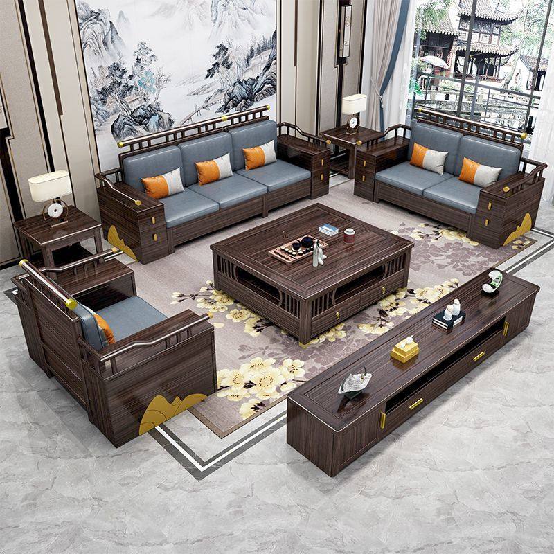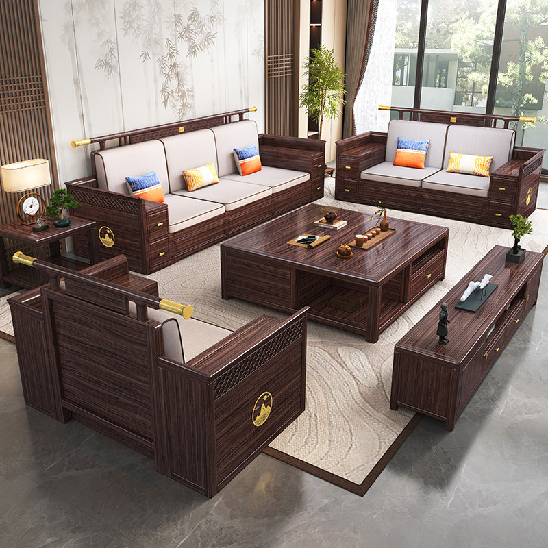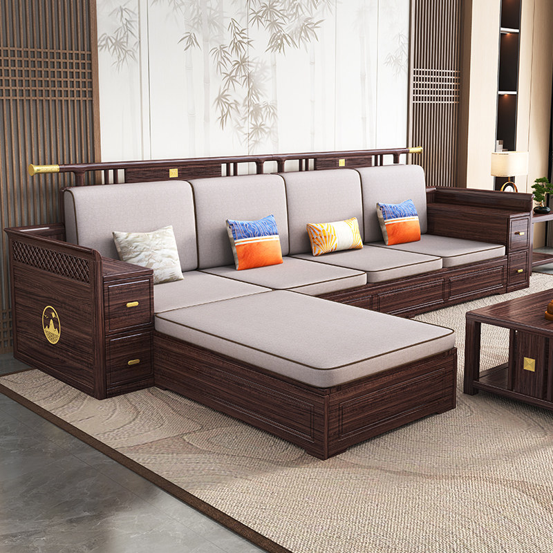 新中式胡桃木实木沙发组合现代简约客厅大小户型冬夏两用储物家具