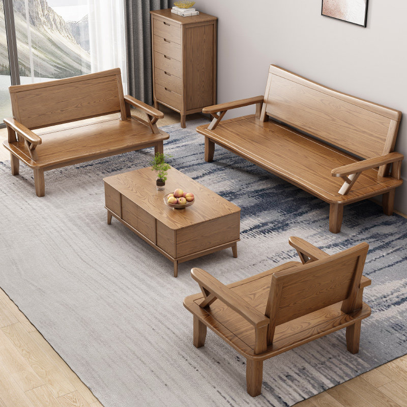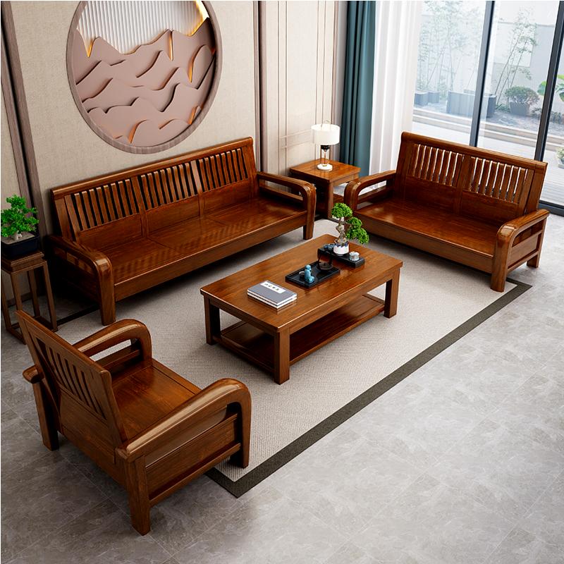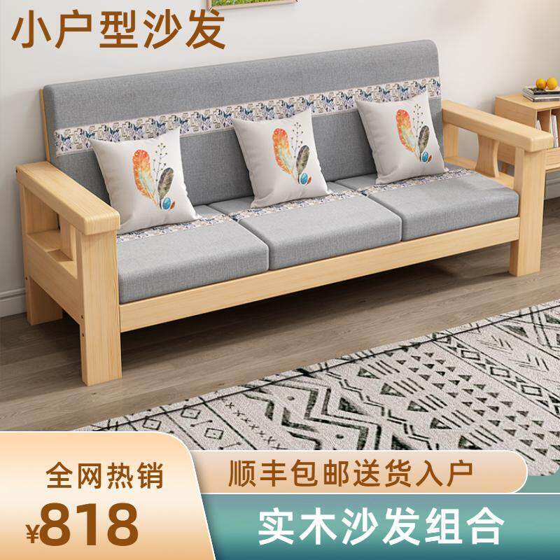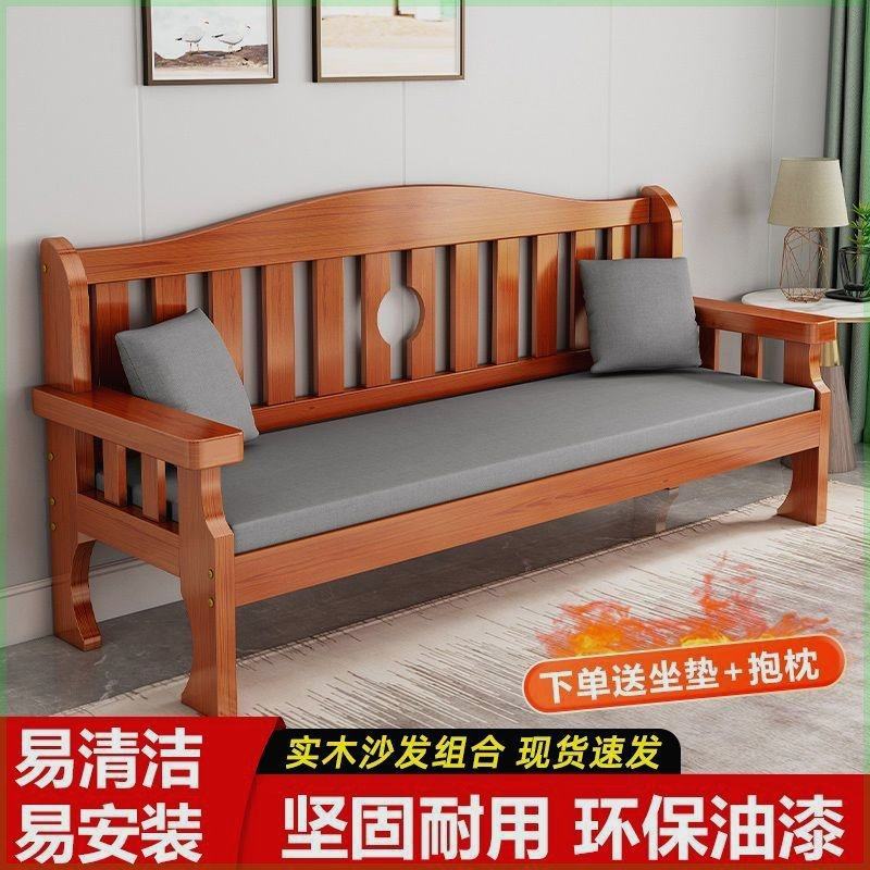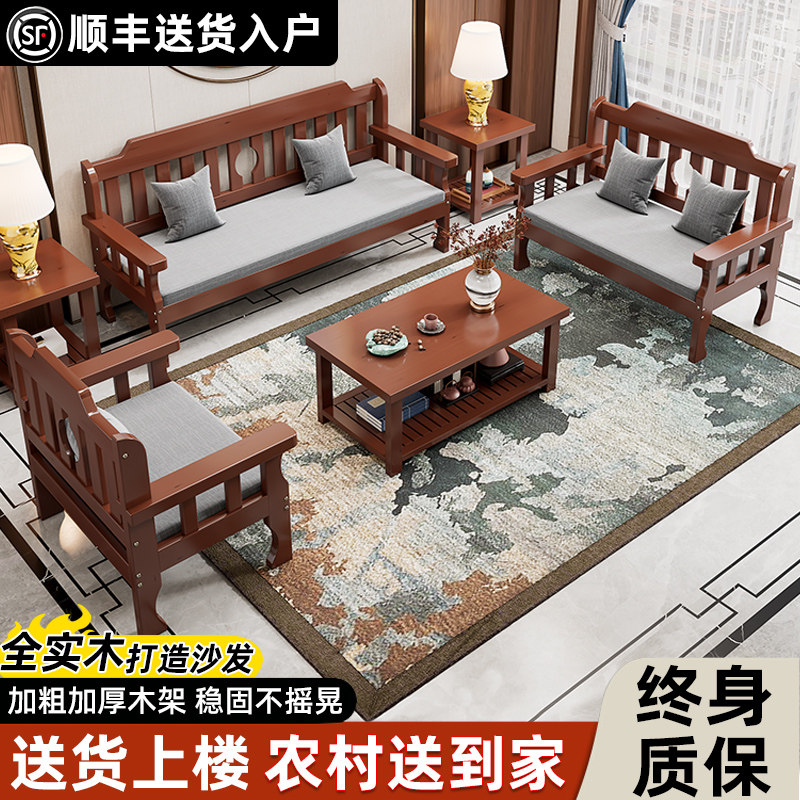中式实木沙发组合简约客厅冬夏两用木质家具经济小户型出租屋沙发