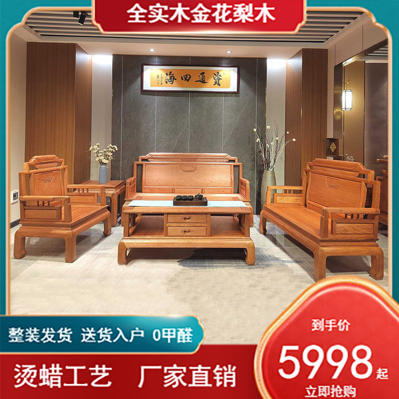 红木全实木新中式沙发组合客厅家具金花梨木古典小户型菠萝格家具