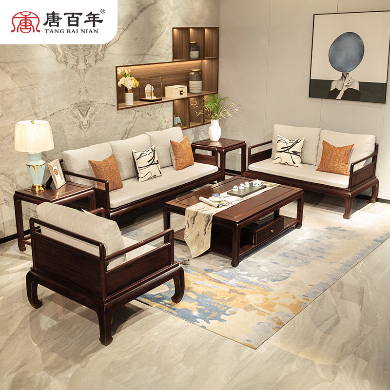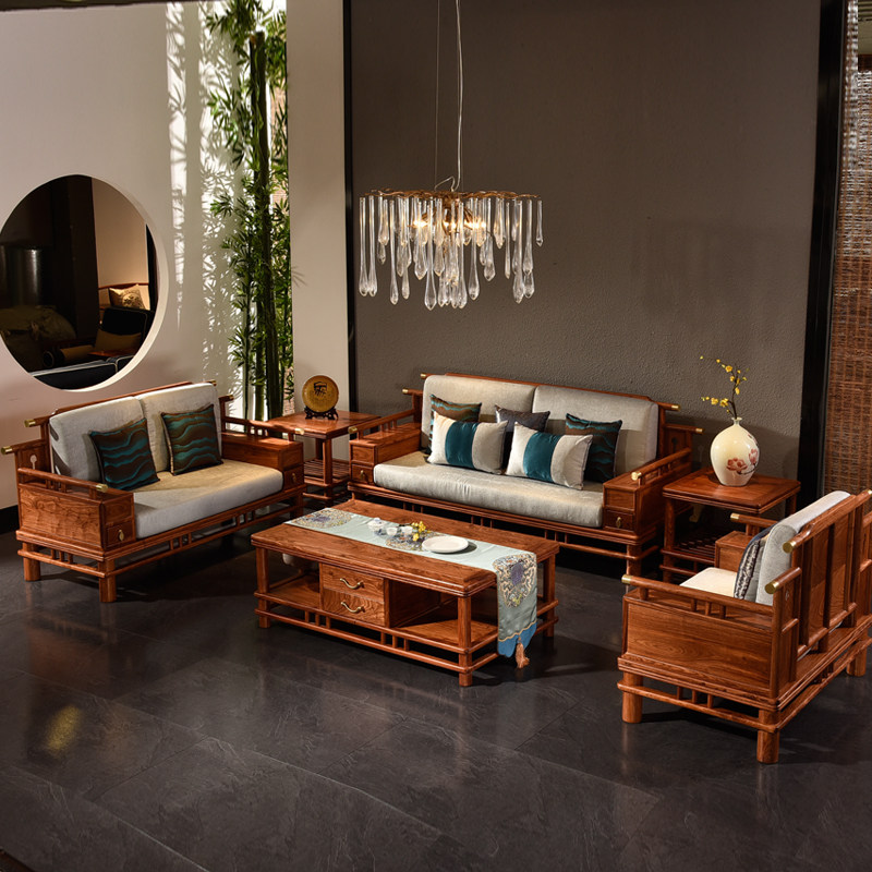 新中式金花梨木全实木整装榫卯冬夏两用沙发客厅菠萝格仿古红家具