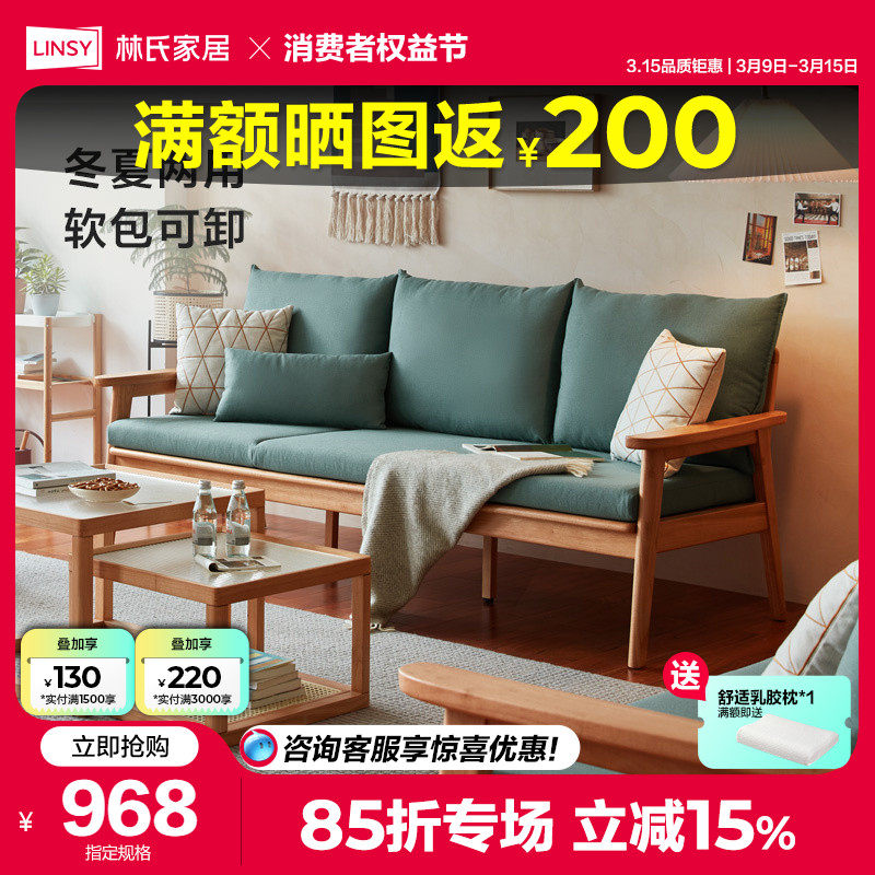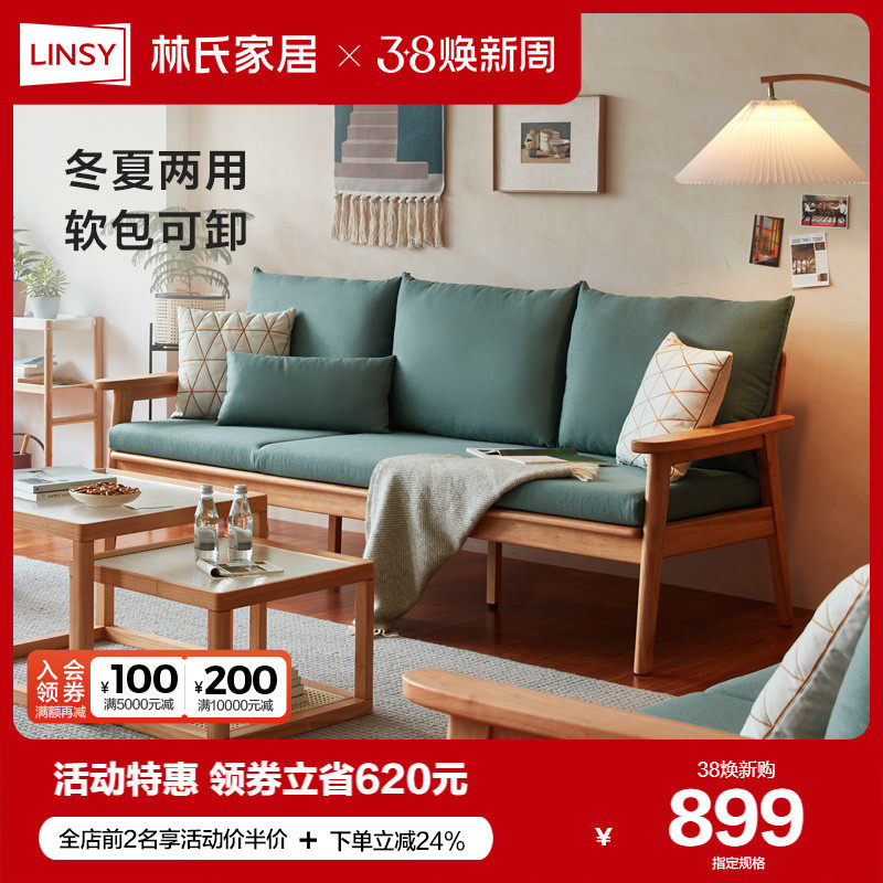 林氏家居北欧日式实木沙发小户型冬夏两用双人家具木质制客厅PK4K