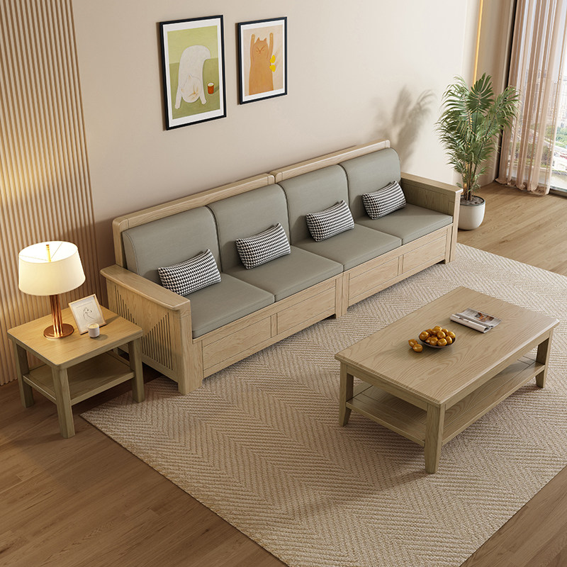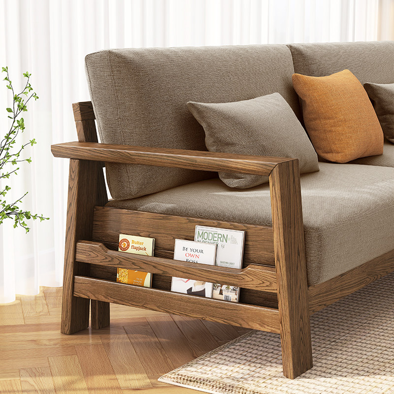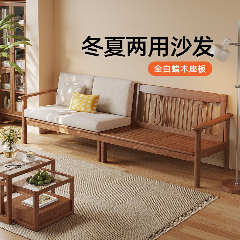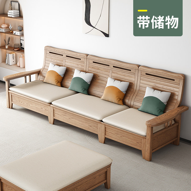 新中式实木沙发组合客厅家用北欧白蜡木布艺沙发冬夏两用储物家具