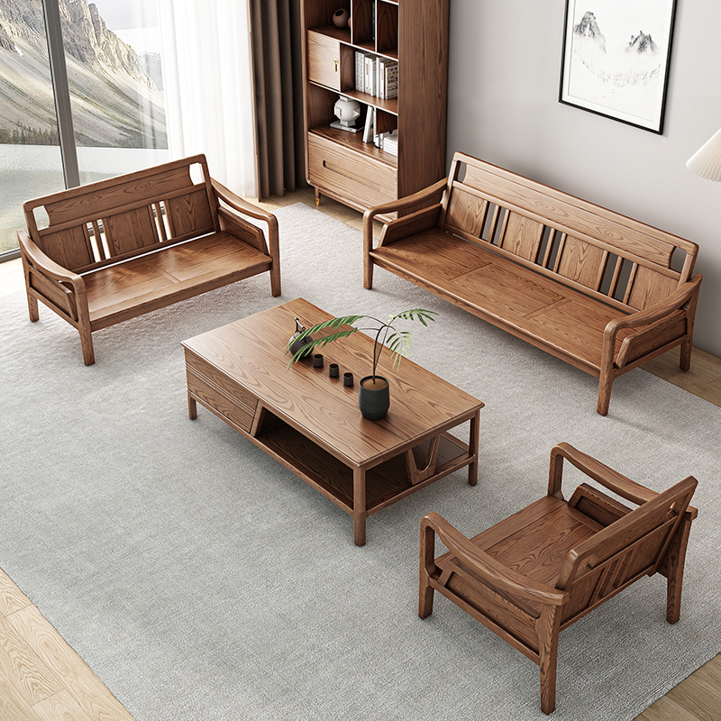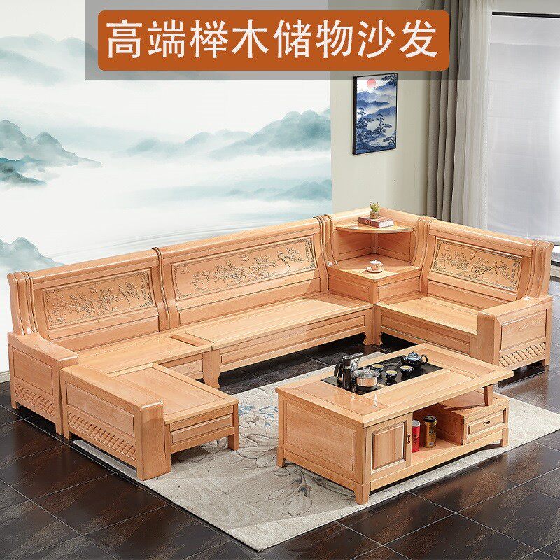 尚木 新中式全实木沙发组合客厅木原质北欧榉木储物沙发