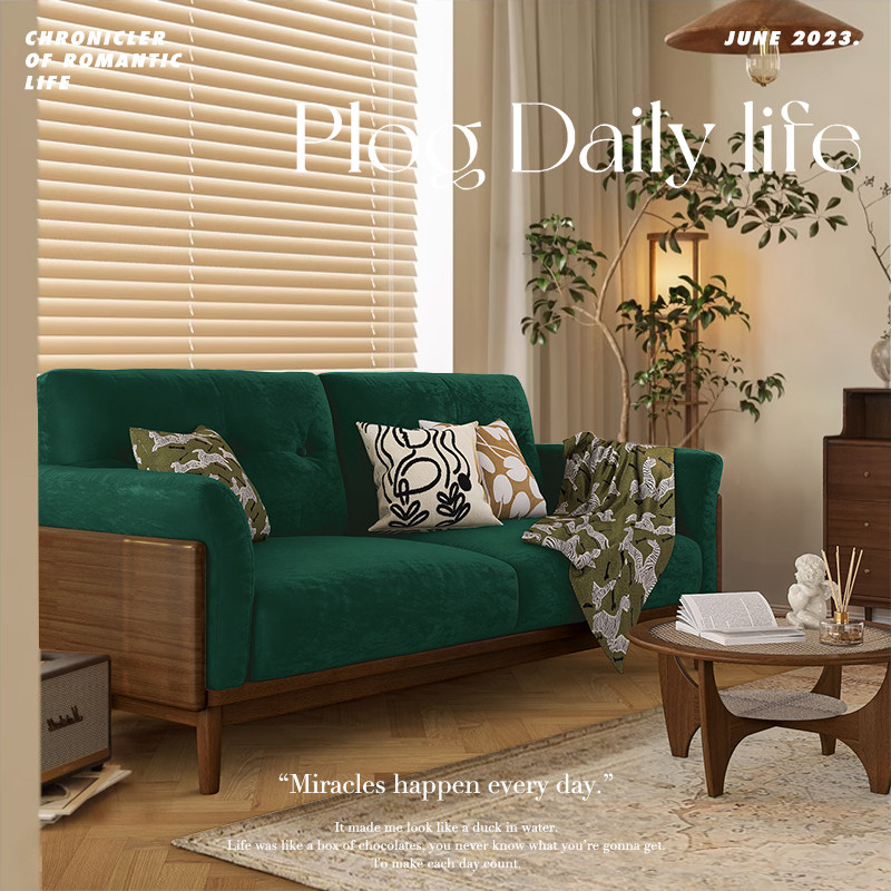 北欧中古风沙发三人位布艺直排复古法式全实木沙发小户型客厅家具