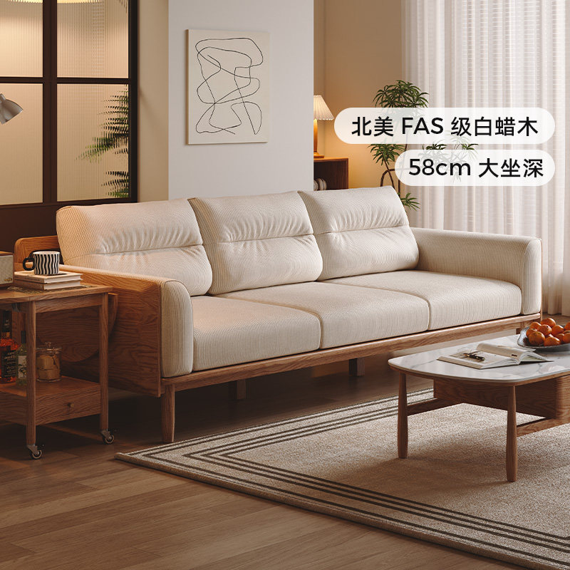北欧纯实木沙发原木客厅新中式科技布三人位沙发两用白蜡木家具