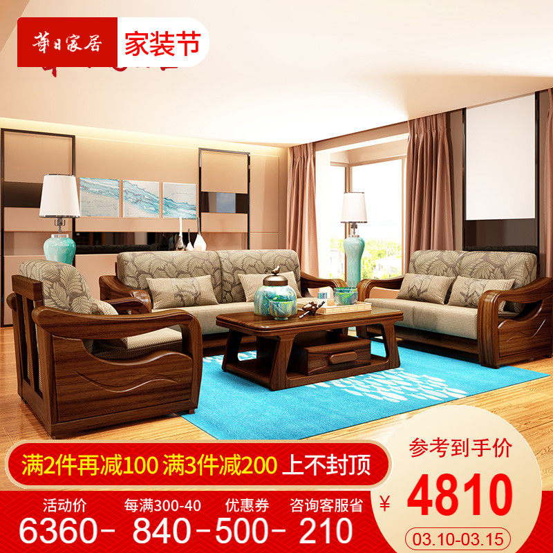 华日家居多人沙发1/2/3人位 实木布艺沙发组合 现代中式经济型
