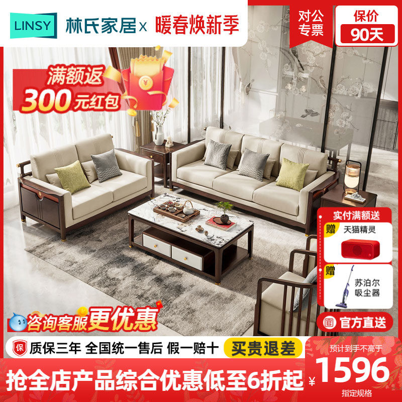 林氏家居新中式轻奢实木沙发白蜡木客厅组合家具套装林氏木业KJ1K