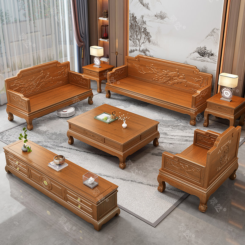 2023实木沙发茶几电视柜组合小户型现代中式简约家用