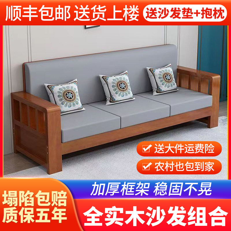 全实木客厅新中式沙发经济型小户型家用现代简约冬夏两用组合椅子