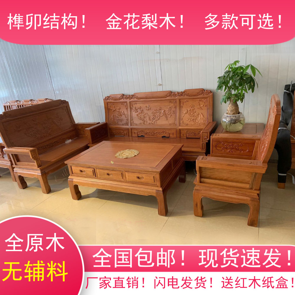 红木中式纯实木沙发组合仿古金花梨非洲菠萝格木可拆厂家直销包邮