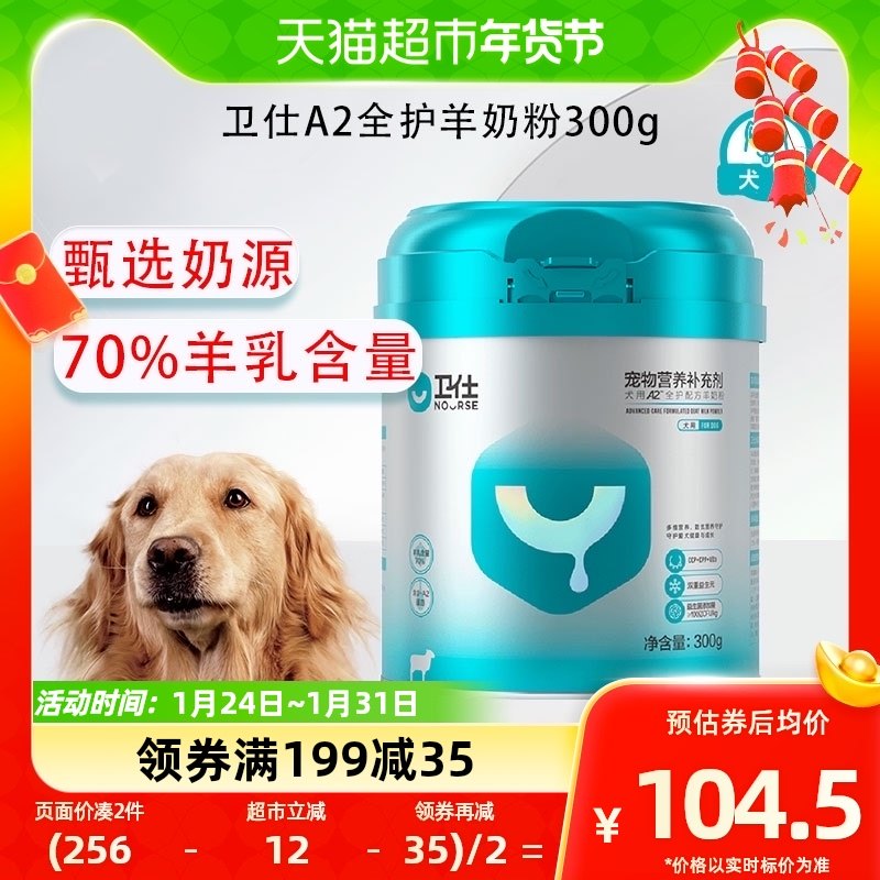 卫仕狗狗营养品全护配方A2狗羊奶粉300g宠物营养补充剂幼犬补钙用