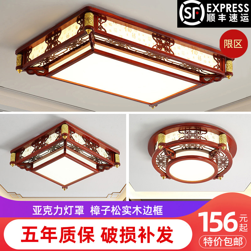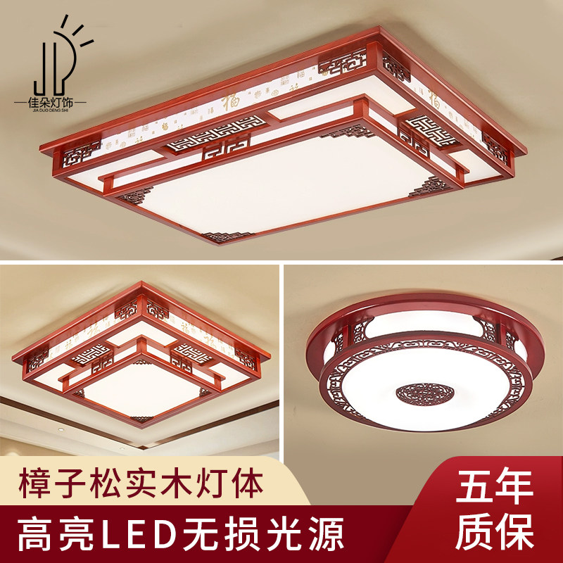新中式吸顶灯中国风客厅灯2023年新款长方形卧室房间仿古实木灯具