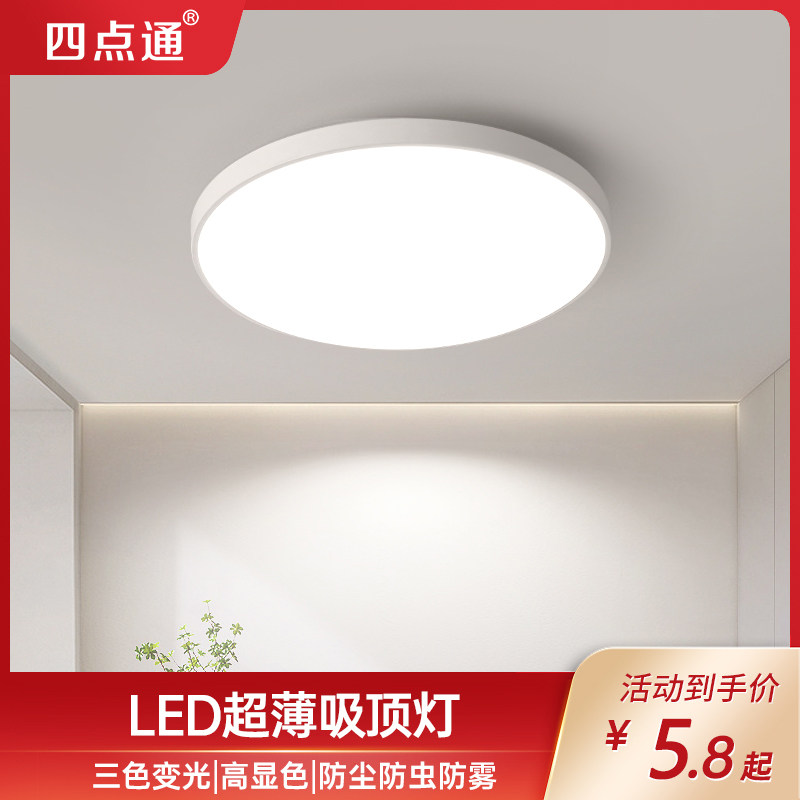 led吸顶灯护眼客厅卧室超薄简约圆形三色声控感应厨房阳台节能灯