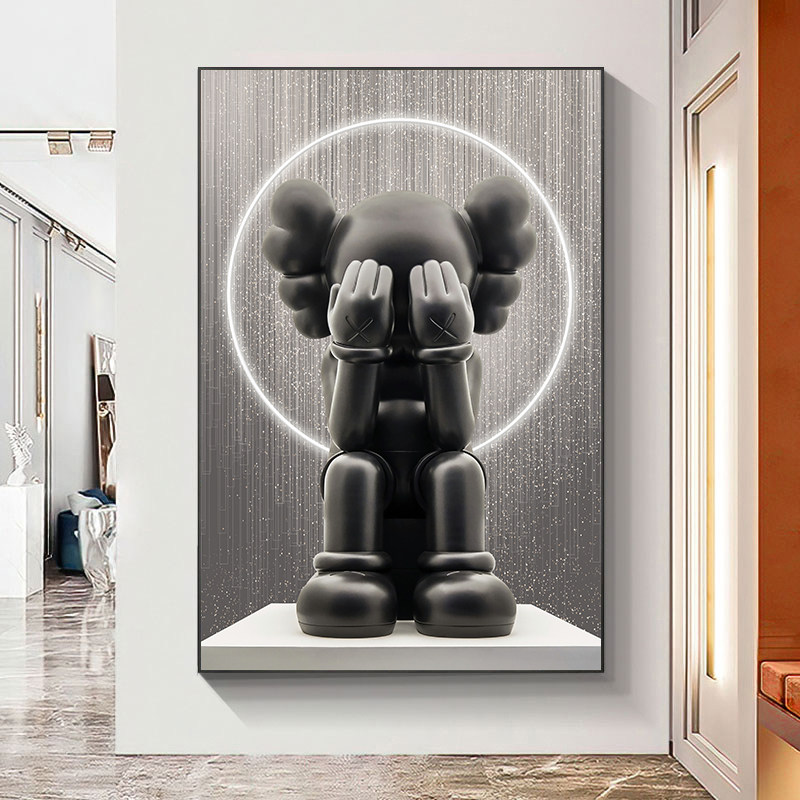 kaws入户玄关装饰画潮牌暴力熊挂画客厅轻奢大气走廊过道网红壁画