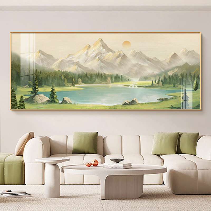 北欧简约客厅装饰画日照金山沙发背景墙挂画高级感轻奢大气山水画