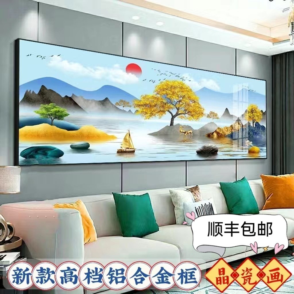 客厅装饰画沙发背景墙画壁画现代简约画晶瓷办公室挂画墙壁山水画