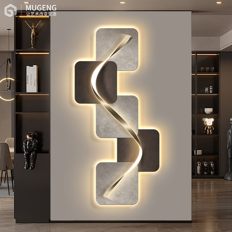 入户玄关轻奢抽象装饰画现代客厅竖版带灯挂画走廊楼梯间高档壁画
