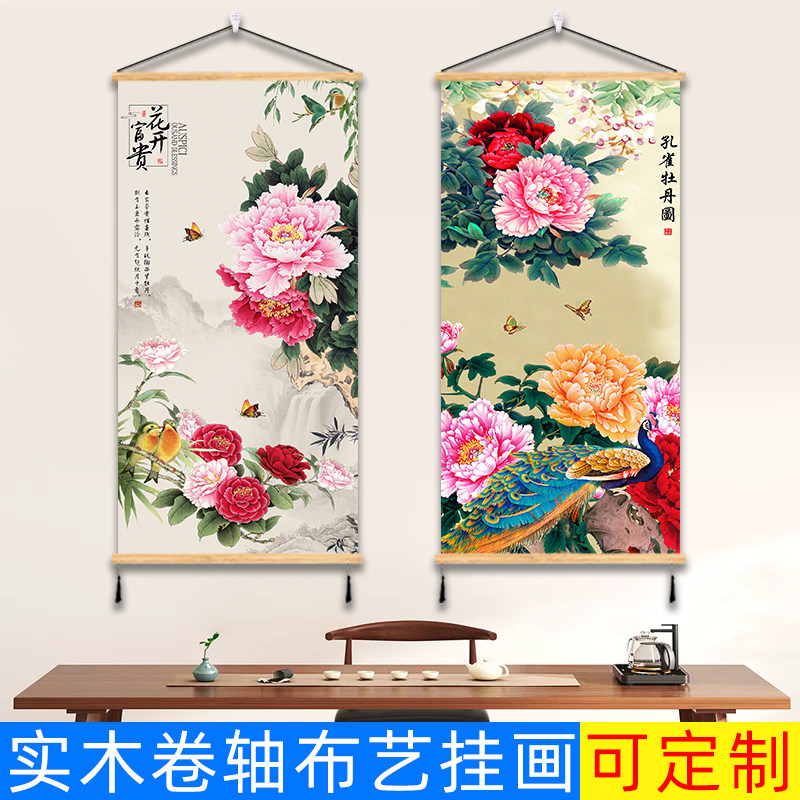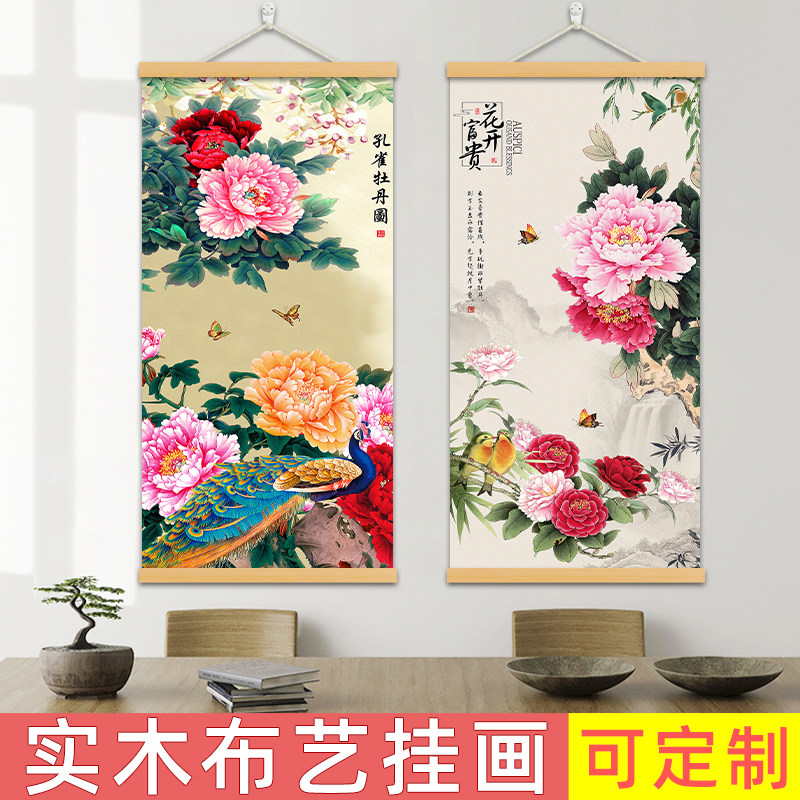 花开富贵牡丹花挂画客厅装饰画玄关入户走廊布艺背景壁画寓意吉祥