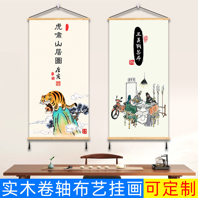 三国趣味恶搞笑挂画虎啸山林图客厅玄关走廊布艺免打孔墙画装饰画