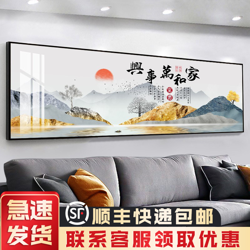 现代轻奢客厅装饰画高档大气沙发背景墙画挂画横幅家和万事兴壁画