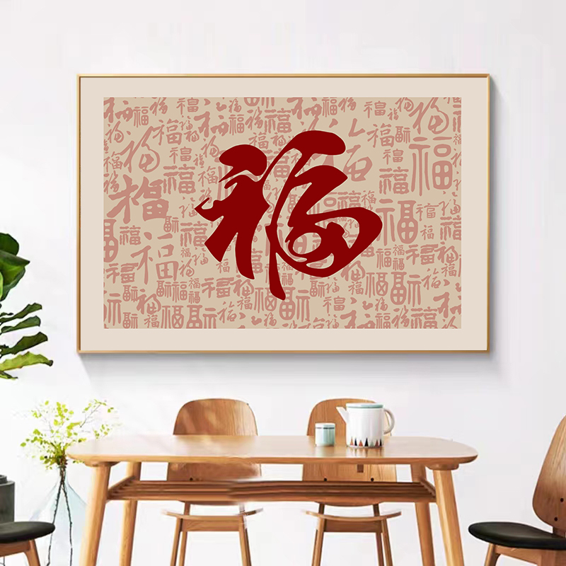 福字新中式餐厅装饰画客厅走廊过道墙壁画餐桌饭厅现代寓意好挂画