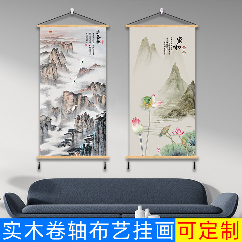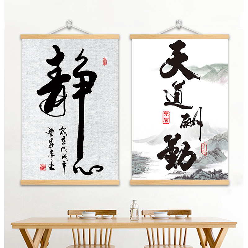 中式字画挂画办公室房间墙面装饰画客厅卧室书法毛笔卷轴挂布壁画