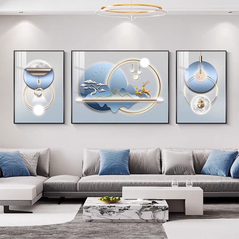 现代简约客厅装饰画轻奢沙发背景墙挂画新款高级感三联画大气壁画