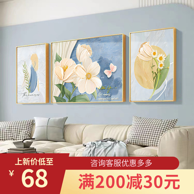 奶油风客厅装饰画现代简约风景三联画壁画北欧轻奢沙发背景墙挂画