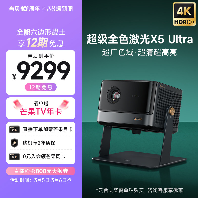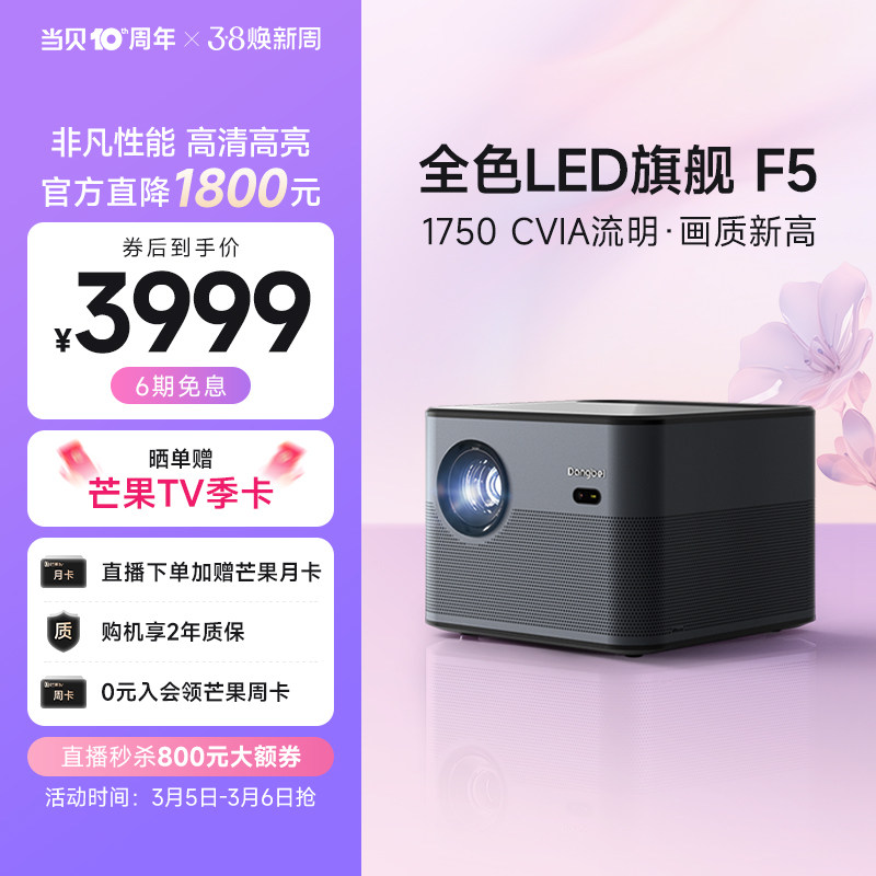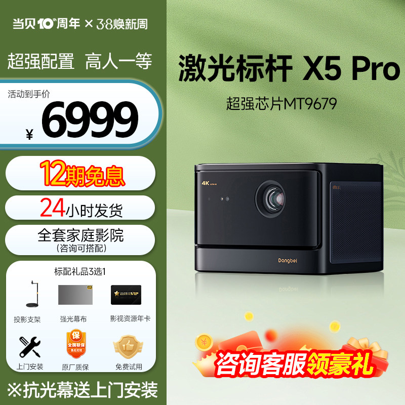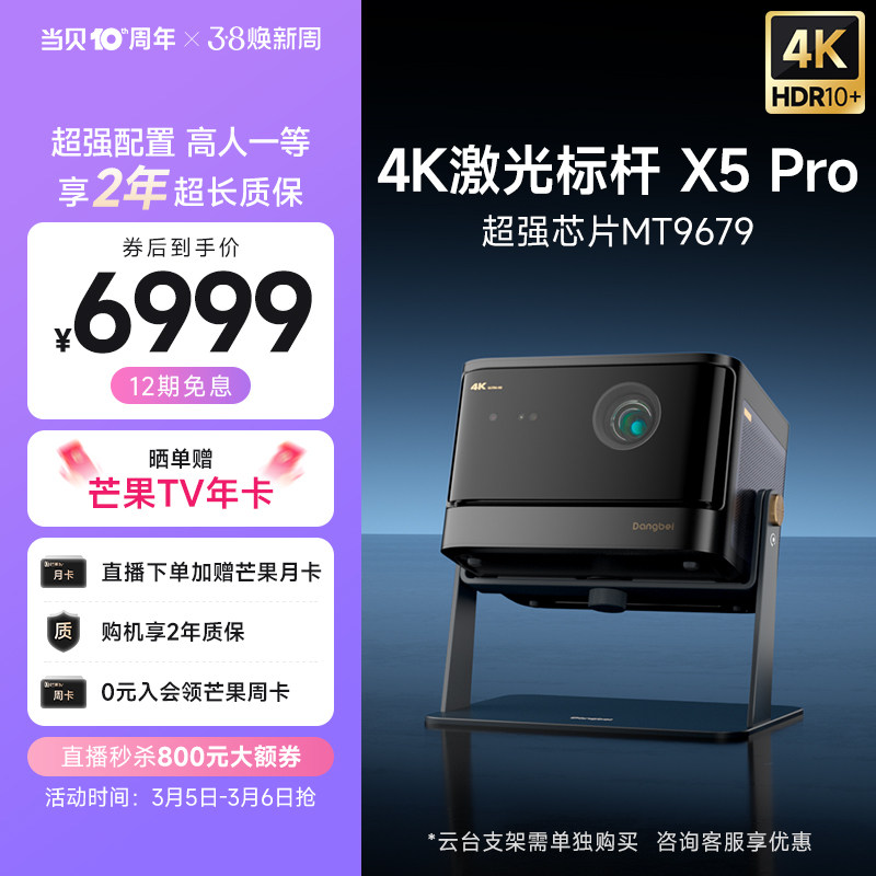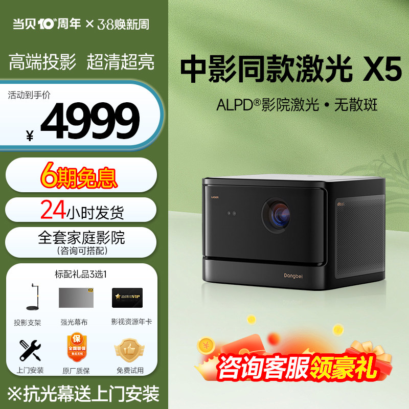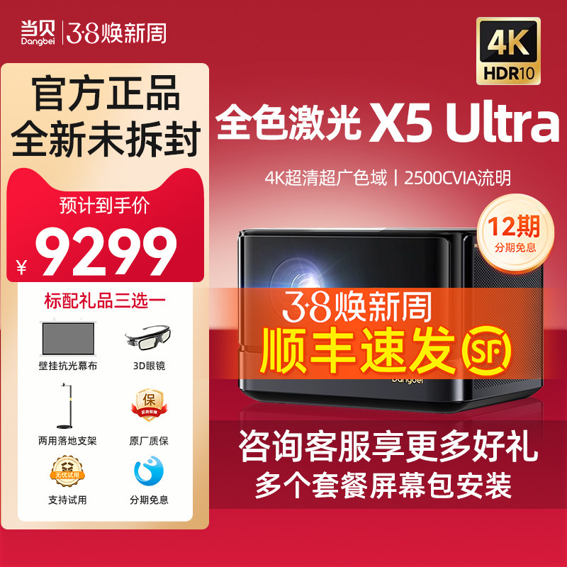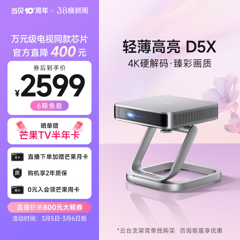 当贝D5X 投影仪家用超高清 投影机客厅卧室投墙投屏 便携智能家庭影院手机投影投屏 游戏娱乐低蓝光护眼