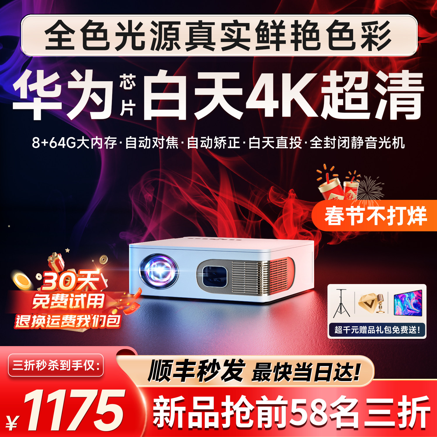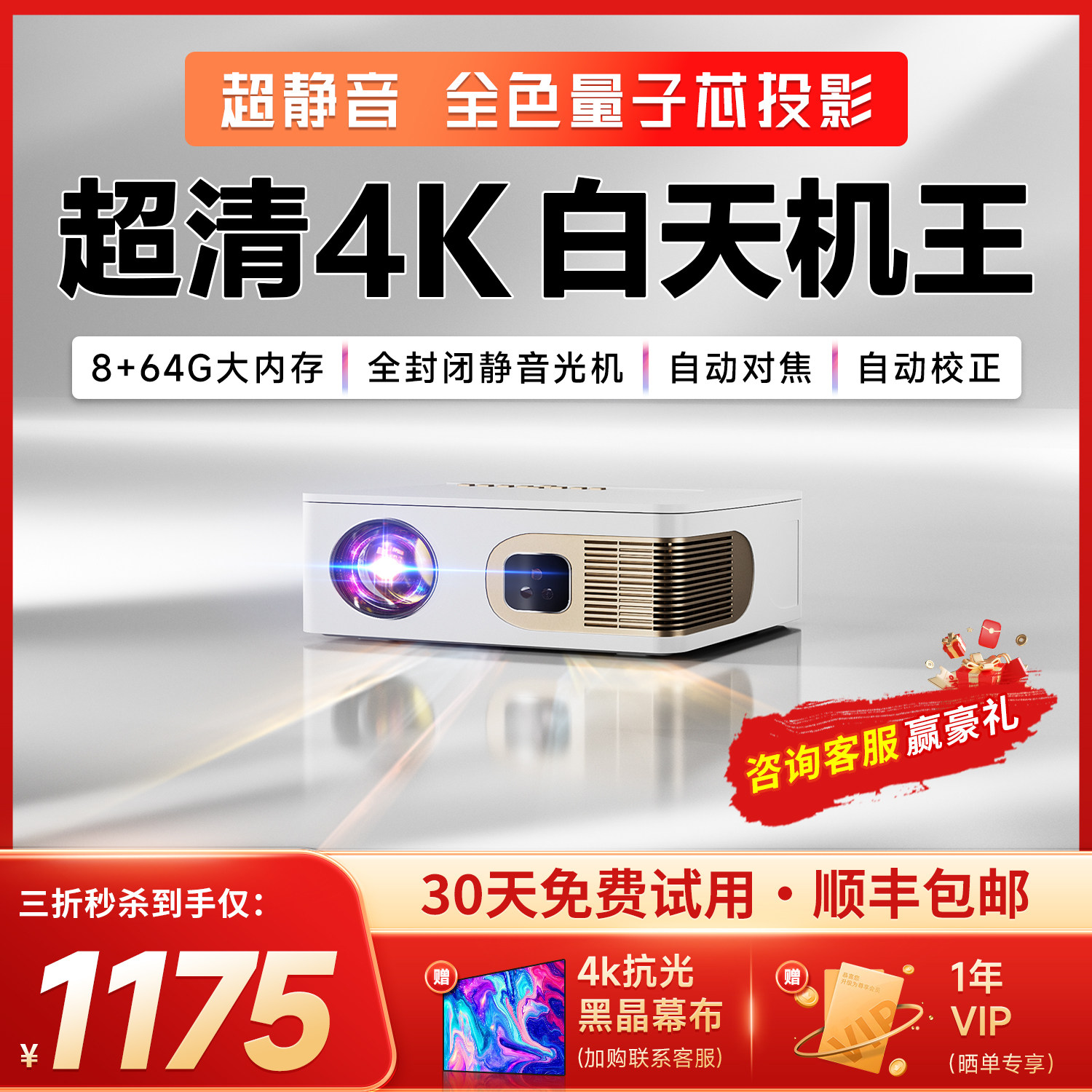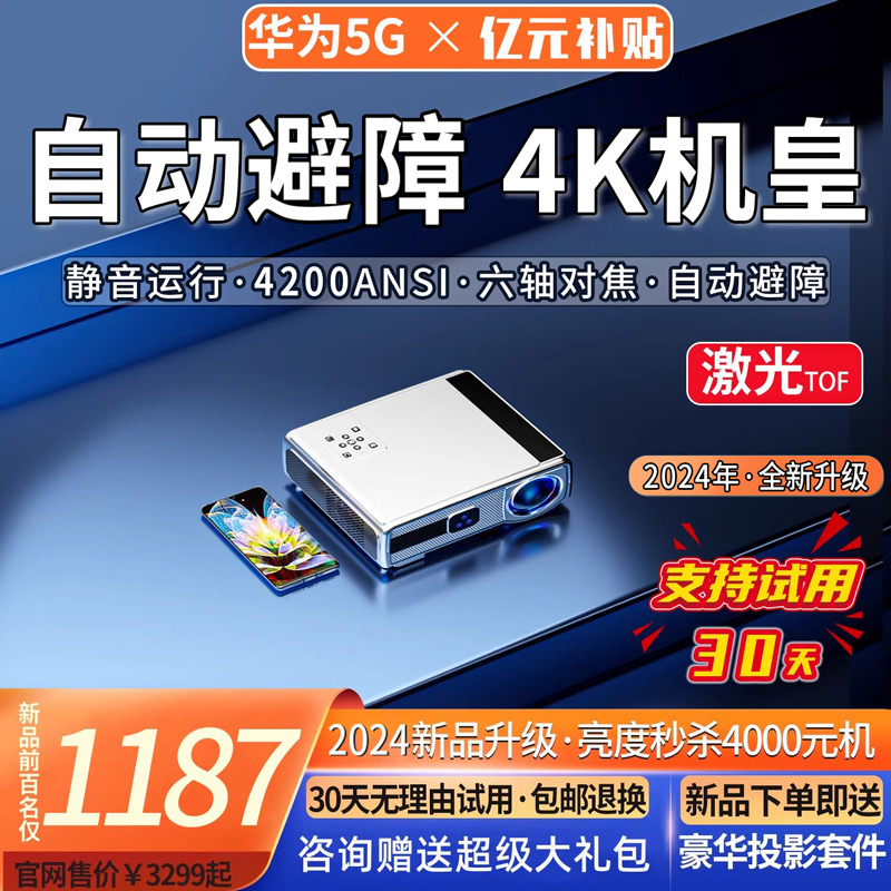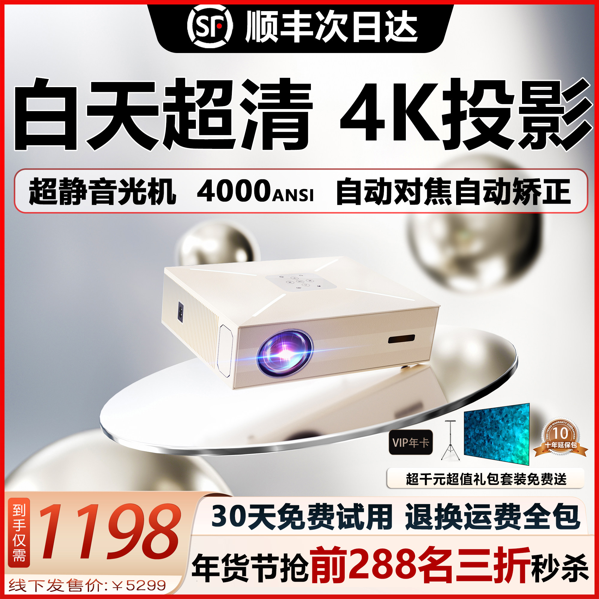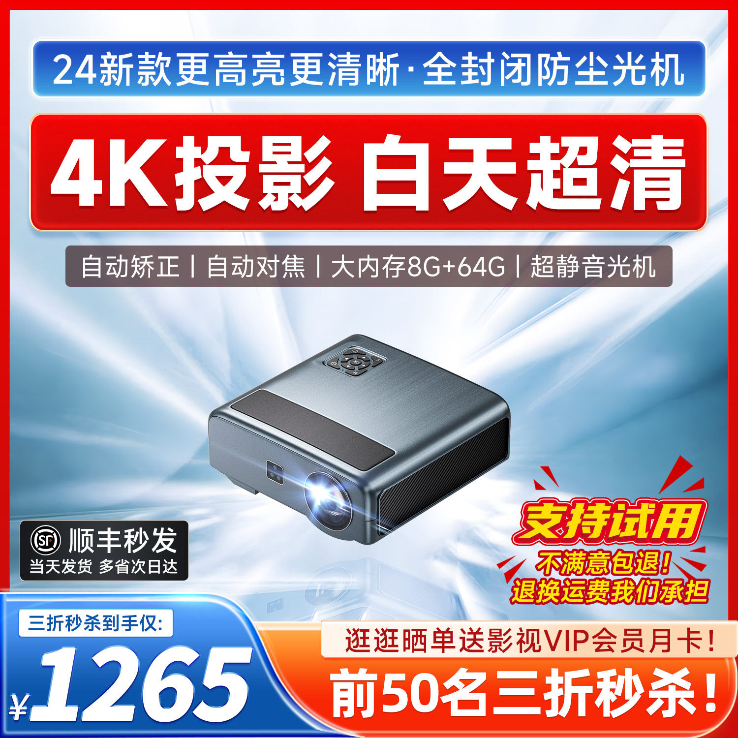 24新款4k超清家用投影仪幕布一体白天强光直投自动卧室客厅家庭影院高流明办公小型静音激光户外专用投影机3D