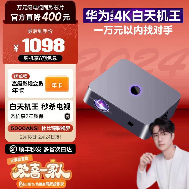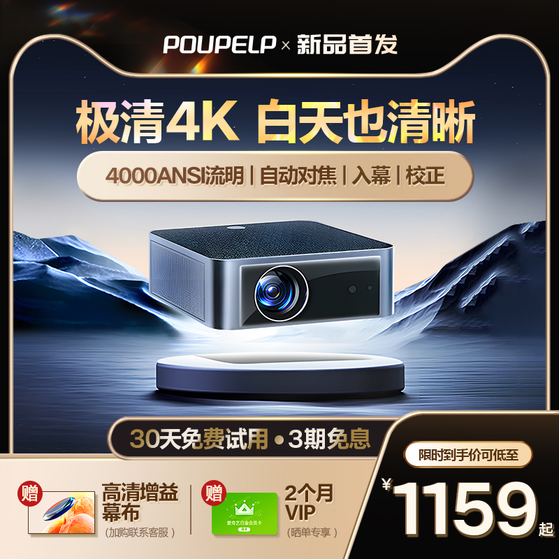 [超清护眼]【2023新款】智能投影仪家用超高清家庭影院卧式墙投手机投屏迷你小型宿舍学生送幕布客厅4K投影机