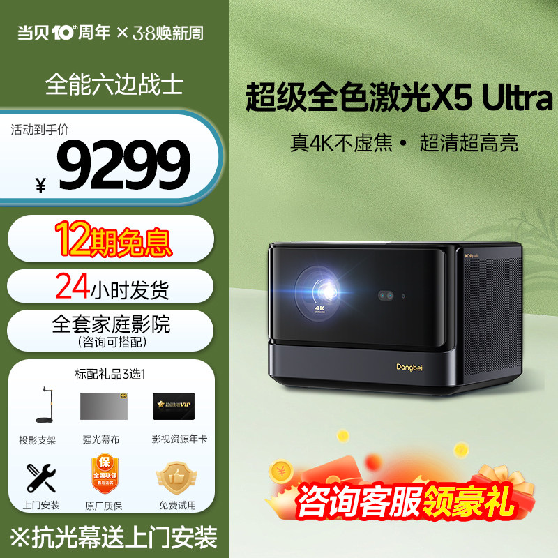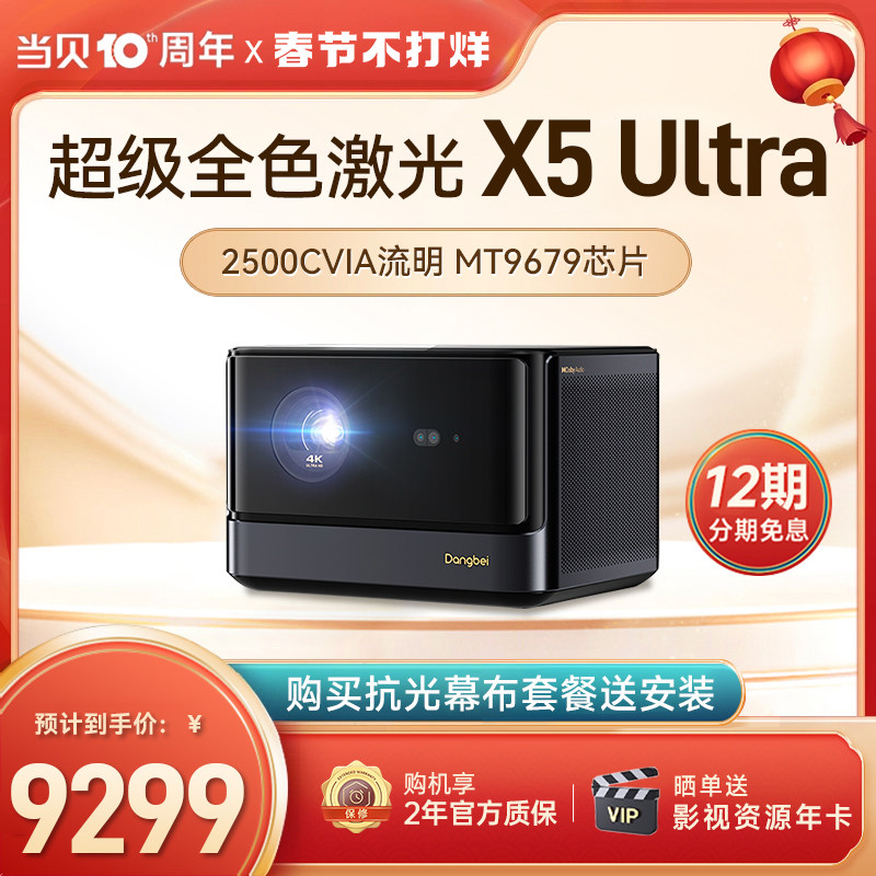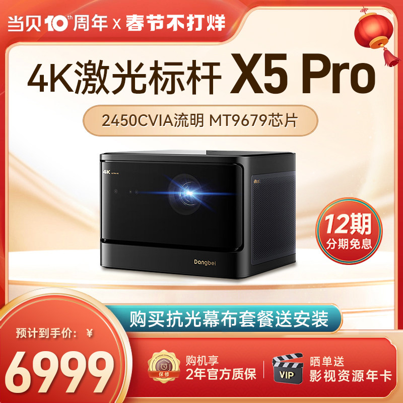 当贝D5X 投影仪家用超高清 投影机客厅卧室投墙投屏 轻薄便携智能家庭影院 手机投影投屏 游戏娱乐低蓝光护眼