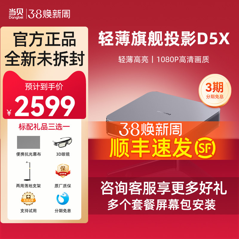 当贝D5X投影仪pro家用小型便携1080p全高清官方d3x无线手机投屏学生宿舍卧室超清儿童墙投投影机智能家庭影院