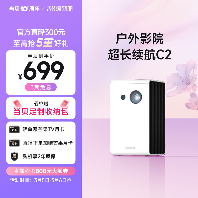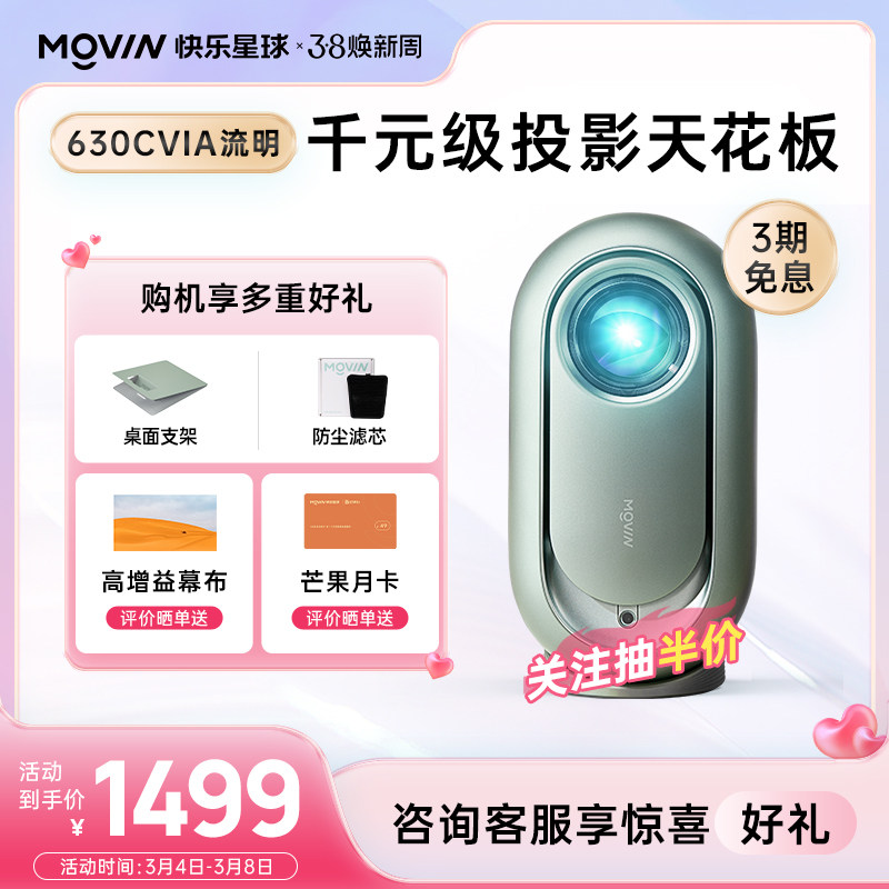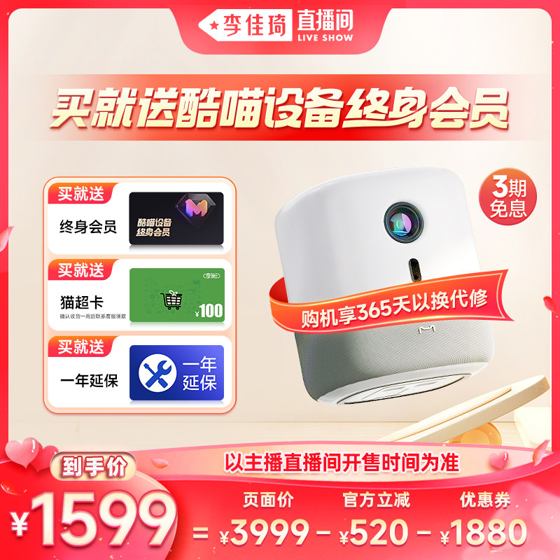 【李佳琦直播间】天猫魔屏N2投影仪家用高清高亮度1080P家庭影院客厅卧室投墙智能投影3D大屏送终身会员