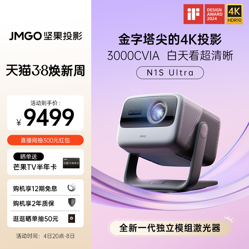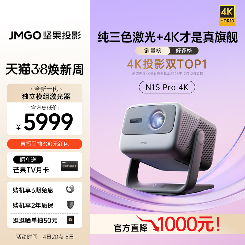 【4K超高清旗舰新品】坚果N1S Pro纯三色激光云台投影仪家用 客厅卧室投墙百寸大屏家庭影院便携式智能投影机