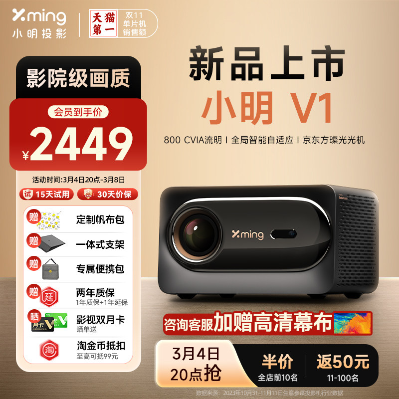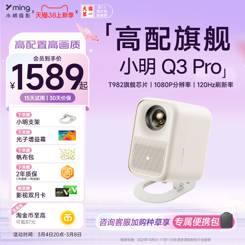 【新品首发】小明Q3Pro投影仪家用超高清智能投影机1080P家庭影院客厅卧室投墙小型宿舍学生手机游戏电视投屏