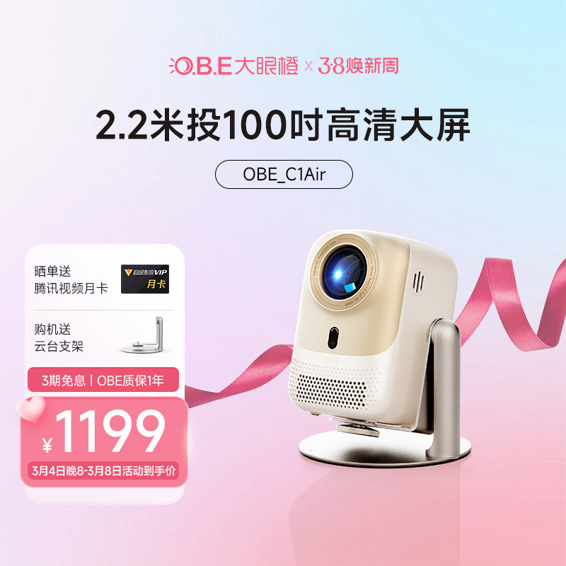 【2024新品】OBE大眼橙c1air投影仪家用超高清云台投影仪1080P智能家庭影院卧室客厅小型宿舍学生手机投屏