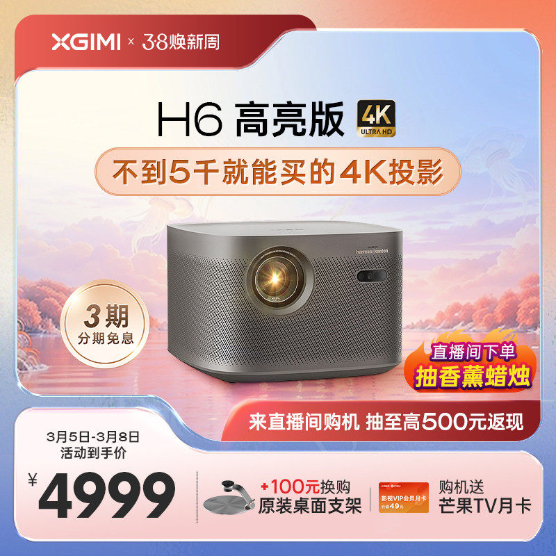 【高亮4K爆款】极米H6 高亮定焦版投影仪4K家用超高清高亮度智能投影机卧室客厅娱乐大屏家庭影院低蓝光护眼