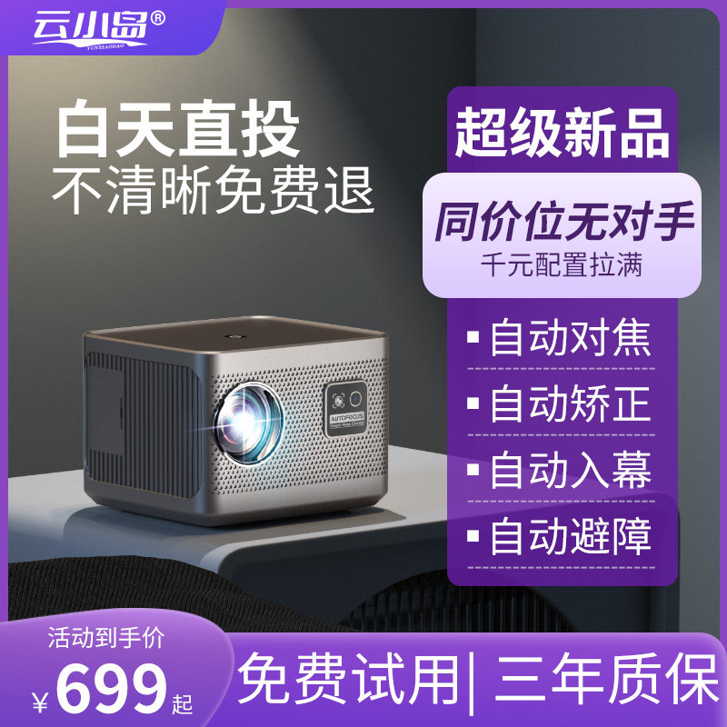 【全自动对焦】投影仪家用4K超高清白天墙面直投手机投屏卧室学生宿舍床头看电视小型便携智能投影机家庭影院