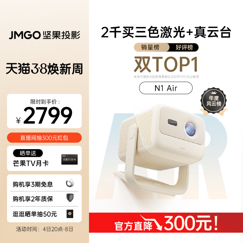 【纯三色激光爆款】坚果N1 Air云台投影仪家用超高清卧室宿舍投墙客厅大屏家庭影院户外便携智能便携式投影机