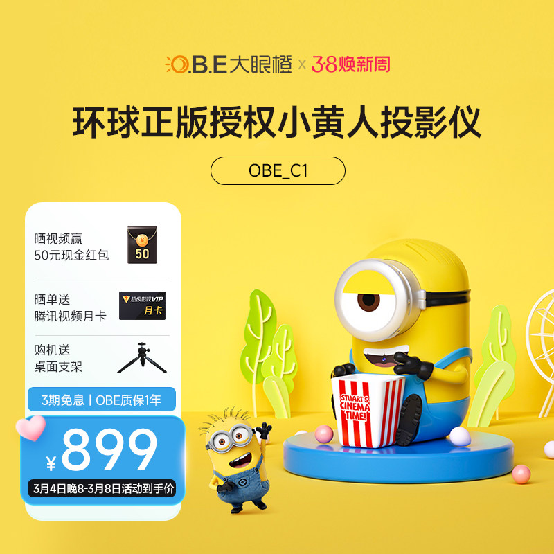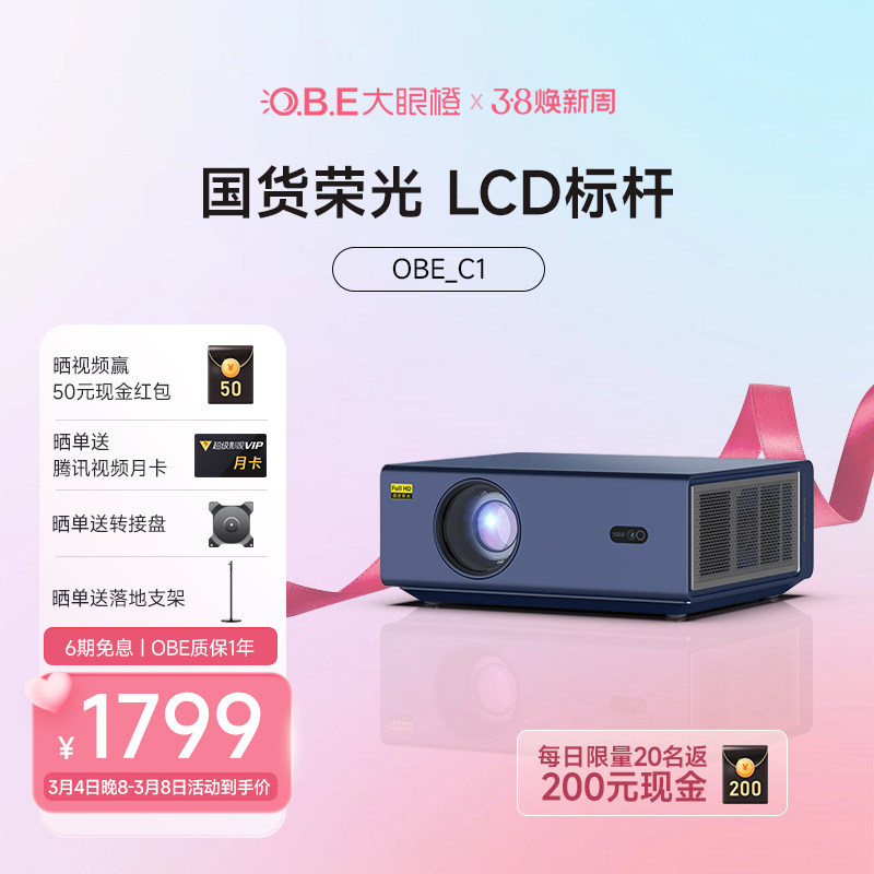 【咨询立减200元】OBE大眼橙C1投影仪超高清家用投影仪真1080P办公会议智能手机同屏卧室投墙大屏家庭影院