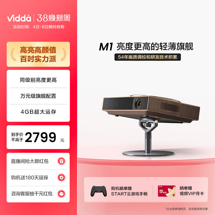 【亮度更高的轻薄旗舰】海信Vidda 悦己 M1 1080P高清家用轻薄小型智能投影卧室手机电视投屏投影仪家庭影院