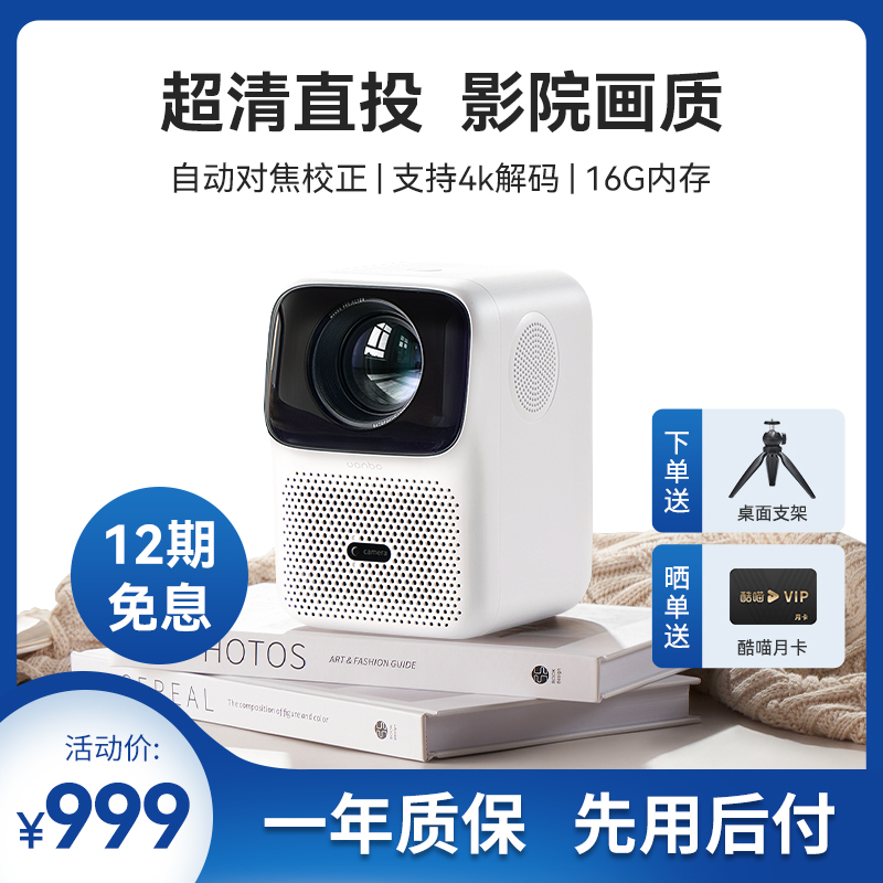 新款wanbo万播T3迷你千元投影仪1080P家用办公超高清智能家庭影院客厅卧室投墙酒店露营便携式投影机手机投屏