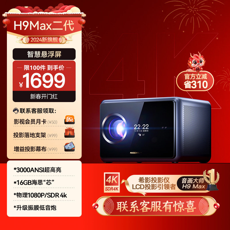 【高清旗舰】希影H9Pro家用投影仪智能家庭影院超高清投墙投影客厅卧室房间手机同屏投屏超清投影机