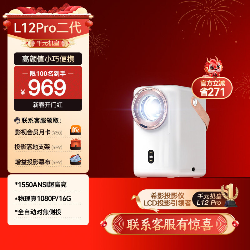 【2024年新款】希影L12Pro智能投影仪1080P家用高清家庭影院投影机卧室房间便携墙投手机投屏小型宿舍投影