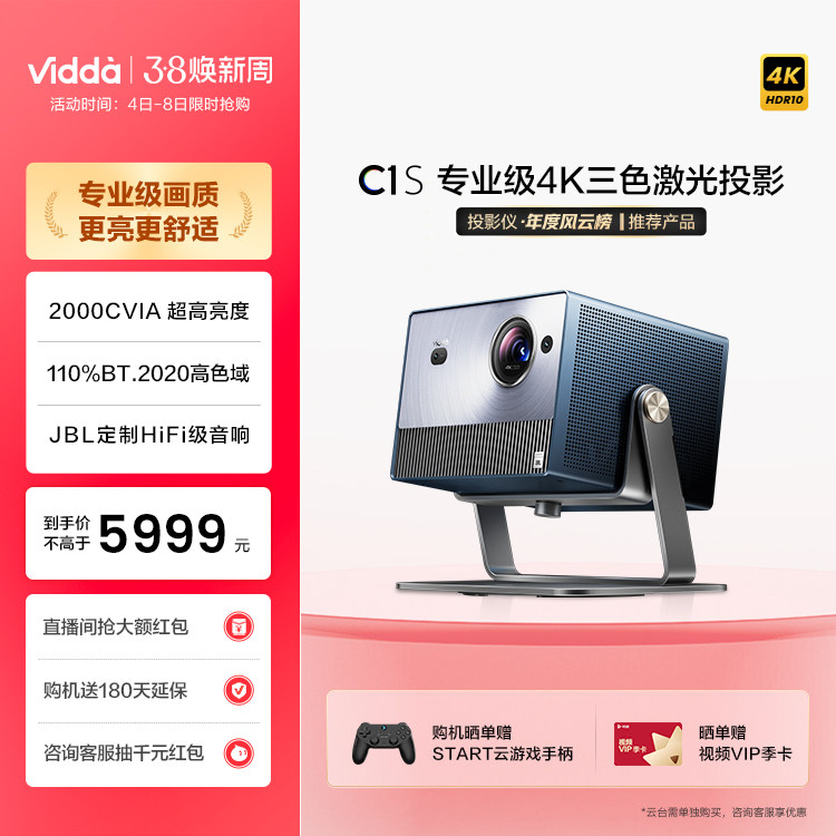 【专业级4K纯三色激光投影仪】Vidda C1S 海信240Hz家用超高清激光投影机游戏电视投屏客厅卧室智能家庭影院