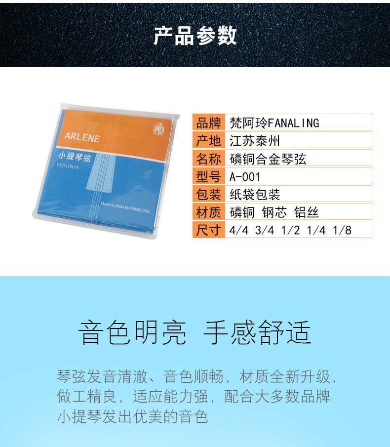 梵阿玲A001小提琴琴弦EADG套装铝镁合金配件初学练习考级演奏推荐