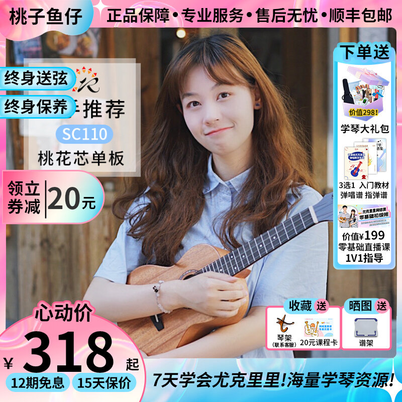 瑞声 桃花芯面单尤克里里23寸PC100 SC110初学入门弹唱 桃子鱼仔